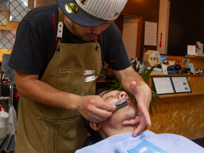 フェードカットは男前スタイルの定番として人気があり、理容店ならではのシェービングは、男性だけでなく女性のお客様からもご好評をいただいています。お顔の産毛を整えることで、化粧水や美容液の浸透が良くなり、ファンデーションのノリもアップ。肌の土台を整えるお手入れとしておすすめです。
